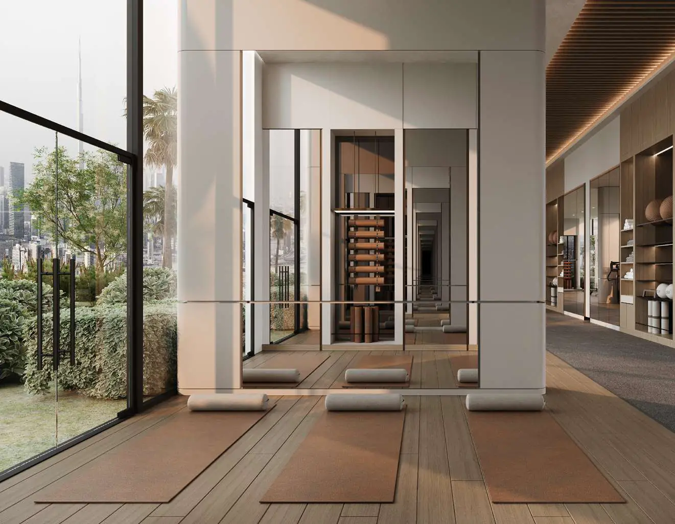 Residents enjoy access to an expansive amenity deck that promotes both activity and tranquillity. Highlights include an adult and kids pool, padel and basketball courts, indoor and outdoor gyms, a yoga area, outdoor cinema, plaza, and jogging track, all designed to foster a vibrant and health-conscious community.